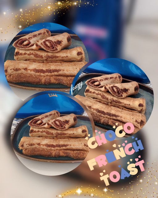 Flatten bread about 6 - 8 slicesSpread choc hazelnut spread Roll up. Dip in milk mixture and fry till golden in non stick pan with a small dollop of butter.