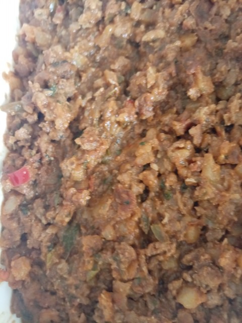 Steam in micro wave few Robot Peppers Also Steam 2 Medium cubed Potato till soft Drain and keep aside for lastIn a pot Add 3 tablespoon ghee (Clarified butter)2 Grated or Chopped Onions1 teaspoon Crushed whole Jeeru (Cumin)Braise till the onion change to a light colourAdd+-1 kg cubed Rump Steak1 teaspoon Ginger Garlic paste ½ teaspoon Crushed garlic Cook till steak also turns a light colour Add1 & ½ teaspoon Kashmiri Chilli powder1 teaspoon Kashmiri Masala1 teaspoon Dhana Jeera Mix1 teaspoon tumeric2 tablespoon Chops & Steak Spice 1 small grated TomatoAdd a Dash of Vinegar Mixed herbsCook well till steak is softadd 2 tablespoon brown onion Soup powderAnd or Soaked Sago Once done add 2 tablespoon Texan Steak marinade, Tomato sauce , Worcestershire sauce, and Mustard and any hot Chilli sauce any amount that you prefer Cook Now add the steamed Potatoes and Peppers Cook till done not dry Garnish with chopped green dhania (coriander) Enjoy😋