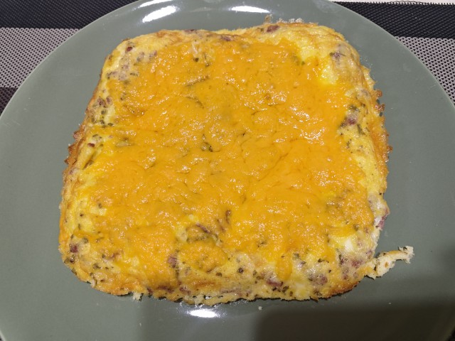 4-6 large eggsSeasoning of your choice Diced salamiMilkMayoParsley Grated cheese