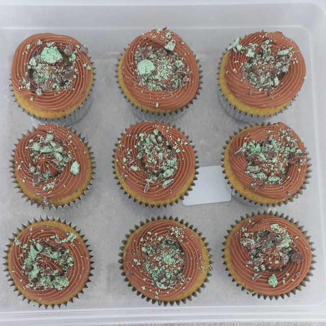 🌿 Make a chocolate topping with 200g chocolate and cream and put on cupcakes. Decorate with crushed mint aero/ grated peppermint crisp.