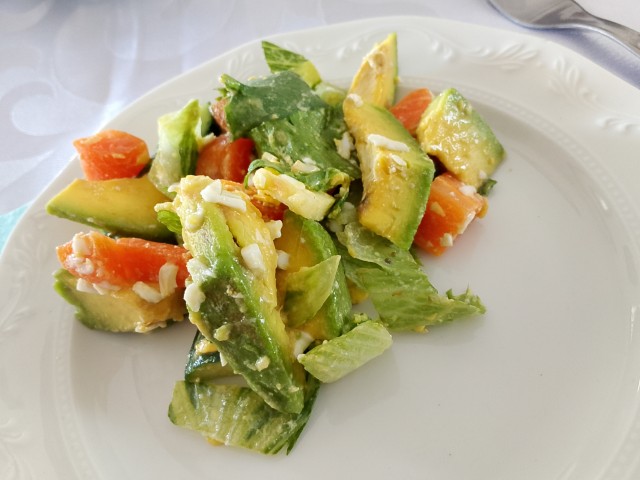 1 Avocado cut in slits4 carrots steamed for 5 minutesButter lettuce3 boiled eggs grated1 apple sliced thinlyHalf a cucumber sliced thinly