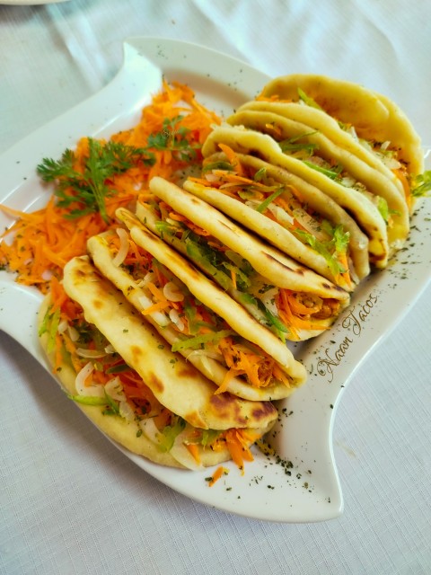 Allow to cool . Open up naan fill with chicken, steak or mince filling of choice. Must be saucy . Add carrots , lettuce , grated green peppers ,onions drizzle mayo over (optional).
