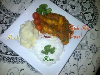 Ingredients:1 XL egg (beaten),1 tin pilchards in tomato,1 teaspoon fine salt,1 teaspoon dhana jeeroo powder, ¼ teaspoon turmeric powder,¼ teaspoon white pepper,1 ½ tablespoon green  chillies garlic paste,5 slices fresh white bread (ground),Handful fresh coriander (finely chopped),Handful fresh spring onions (chopped).