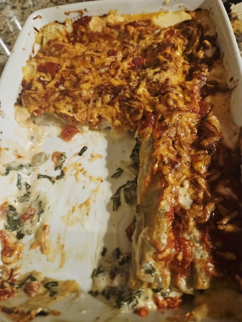 If I could give this a 10/5, I would. Lovely recipe. Came out really nice. 1 box cannelloni was enough. Will def make again. I would bake and add cheese last 5 mins of cooking so its melted. I used the baking times from another similar recipe on this site (maybe 20 mins)